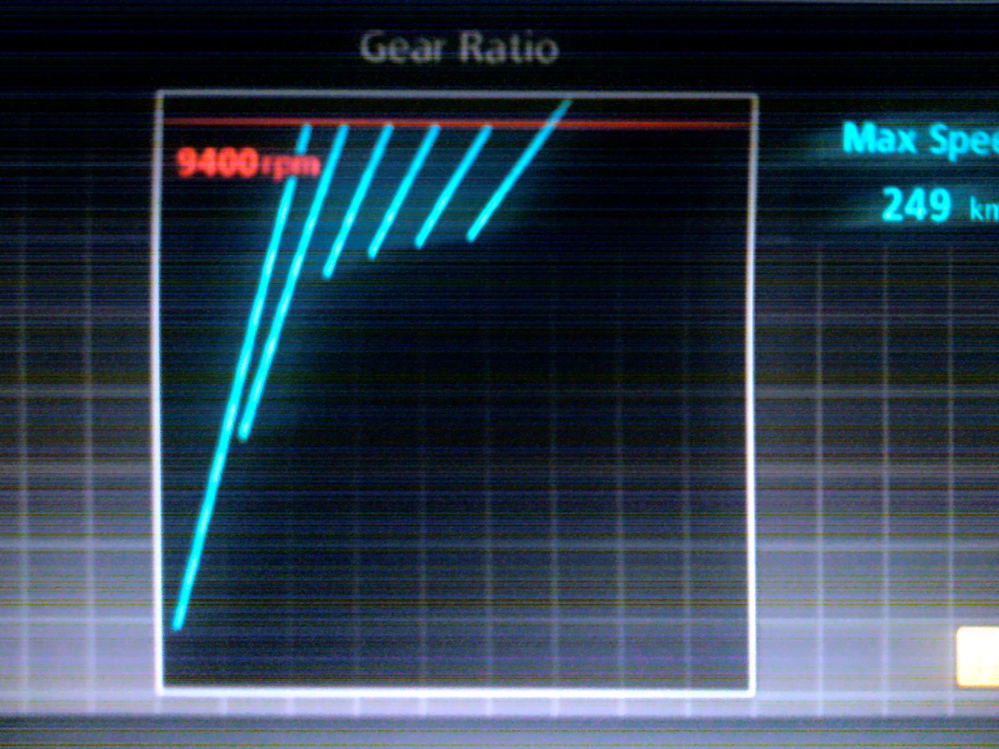 Try and get the bottom of 5th gears (Second last gear for the skyline) line very close to the one of 6th (Last gear